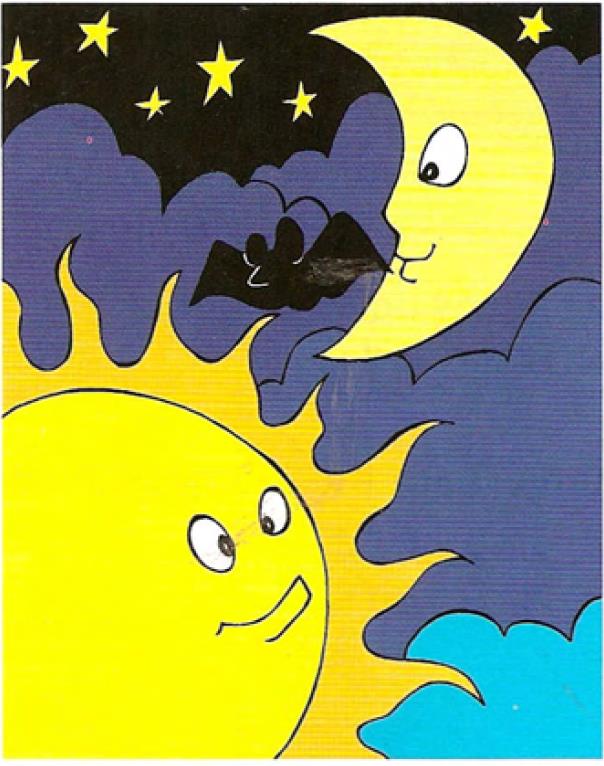 That's why today you will never see the bat near the sun. He is always with his friend, the moon.